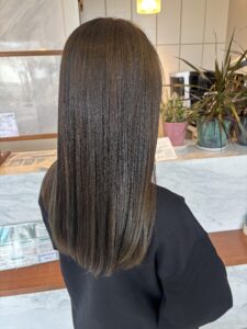 仕上げは軽くブローするだけでも十分きれいですが、ストレートアイロンを軽く通すと、よりツヤが際立ちます。オイルは毛先中心に少量なじませるのがおすすめ。重くなりすぎず、上品な質感をキープできます。