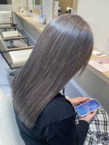 日本人の髪はどうしても赤みやオレンジみが出やすいですが、グレージュはその赤みをしっかり打ち消してくれるので、柔らかく上品な印象にしてくれる人気カラーです◎